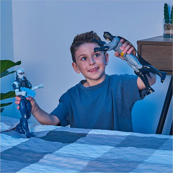 Batman srebrna figurica visoka je 30 cm i ima 11 pokretnih zglobova za dinamične poze. Stripovski detalji i sjajno srebrno odijelo oživljavaju heroja Gothama, omogućujući djeci da izmišljaju vlastite avanture i spašavanja.