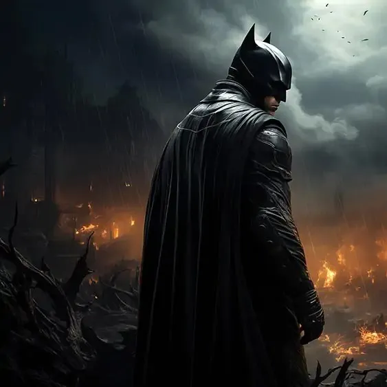 Usred ruševina Gothama, Batman stoji nepokolebljivo. „Još jedna noć, još jedan nered,” promrmlja, plašt mu vijori. Čučne i proučava pougljeni batarang. „Jokerovo djelo, bez sumnje.” S odlučnim pogledom šapće: „Moram ga pronaći prije nego noćne more postanu stvarnost.” Batman nestaje u dimu, cilj: pronaći Jokera.