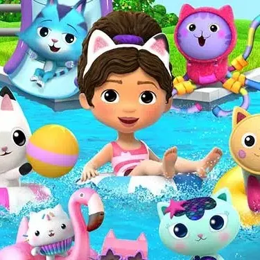 Uz blistavi bazen Gabby viče: „Tko ide na natjecanje u špricanju?” Cakey skače: „Ja! Pobjednik dobiva muffine!” MerCat maše repom: „Pripremite se za valove!” Kitty Fairy leti: „Ne zaboravite na sigurnost!” Svi se smiju kad vide zaglavljenog flaminga—vrijeme je za Veliko spašavanje flaminga!