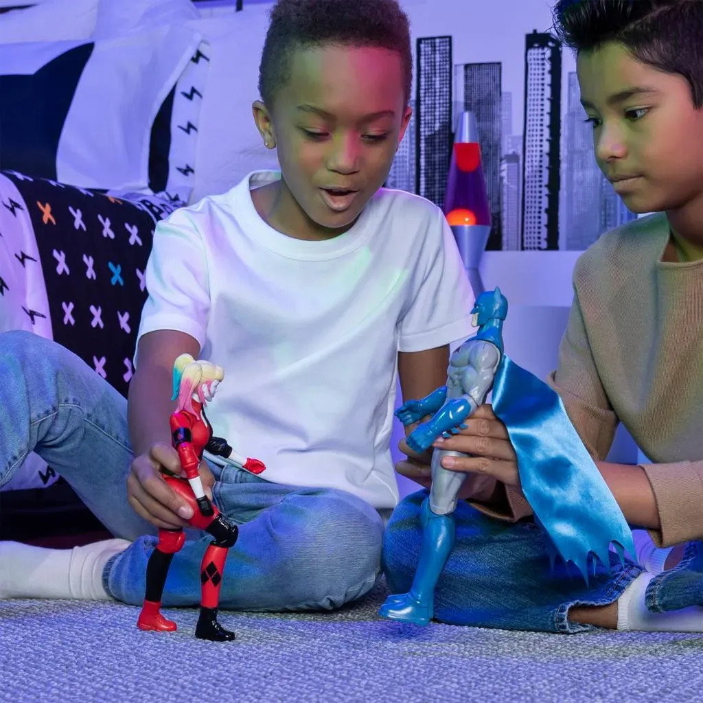 Akcijska figurica Harley Quinn 30 cm oživljava divlje avanture iz Gothama. Uz 11 pomičnih zglobova i detaljan stripovski kostim, može zauzimati poze kao u pričama. Djeca mogu izmišljati vlastite bitke, spačke i bijegove s omiljenom DC zlikovkom.