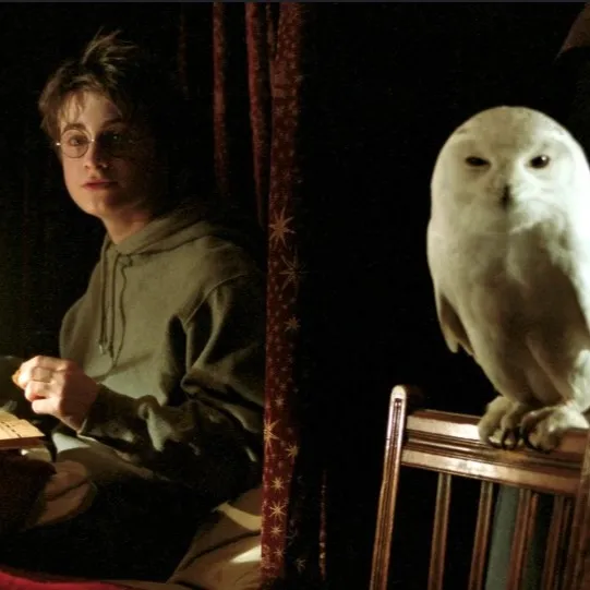 U svjetlu svijeća u Gryffindor spavaonici, Harry piše na pergamentu. „Hedwig, misliš li da će mi se Ron opet smijati zbog rukopisa?” Hedwig trepne i tiho hukne. „U pravu si, bit će mu drago što se javljam.” Harry stavlja pismo u kljun. „Spremna za ponoćni let do Brloga?”