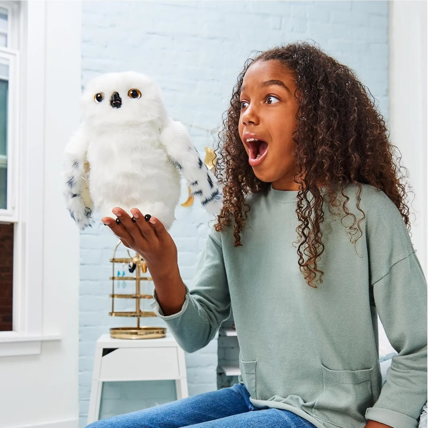 Interaktivna sova Hedwig vodi djecu u svijet Harryja Pottera pokretljivom glavom, čarobnim zvukovima i funkcijom dostave pisama. Ispušta više od 15 zvukova, reagira na dodir, a djeca obožavaju češljati njezino mekano perje. Svaka igra je prava čarolija.