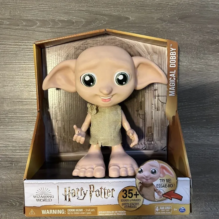 Ova čarobna govoreća Dobby figura donosi svijet Harryja Pottera ravno u dječje ruke. S više od 30 autentičnih rečenica na češkom i slovačkom, Dobby trepće, miče ušima, rukama i glavom za stvarnu igru. Priložena čarapa pokreće posebne reakcije, pa djeca mogu proživjeti poznate trenutke i osmisliti vlastite čarobne pustolovine.