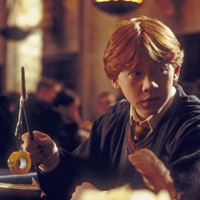 U užurbanoj Velikoj dvorani Ron steže štapić. „Hermione, misliš li da će ova čarolija popraviti moj pire?” Hermiona uzdahne: „Samo ako se ovaj put stvarno koncentriraš, Rone.” Harry se smije: „Samo da ne postanu puževi!” Smijeh raste dok Ron pokušava ponovno - današnji izazov: svladati čaroliju Reparo prije deserta!