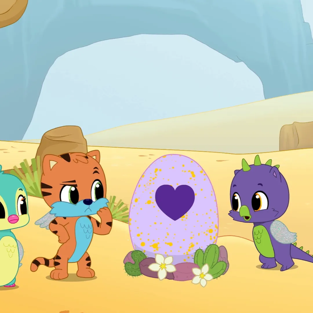 Uz kameni luk Penguala maše krilima: „Mislite li da će ovaj put biti Merpufficorn?” Tigrette se smiješi: „Ako bude, ja uzimam večeru sa špagetima!” Draggle se smije, krila mu sjaje: „Nemojmo ga uplašiti - sjećate se prošli put?” Sva trojica se naginju bliže, zadržavaju dah dok neonsko jaje počinje svijetliti: stigao je dan izlijeganja!