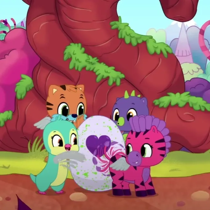 Ispod golemog stabla u Fabula Forestu Penguala šapće: „Osjećam kako se jaje miče!” Draggle se smije: „Kladim se da je to leteći jednorog—zadnji je pokušao pojesti moj rep!” Zebrafromo se kikoće: „Dodirnimo svi srce!” Tigrette prede: „Spremni? Na tri—pozdravimo novog prijatelja!” Jaje svijetli, izlijeganje počinje!