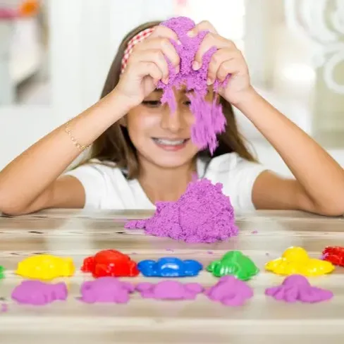 Za kuhinjskim stolom Mia se smije dok joj ljubičasti Kinetic Sand klizi kroz prste. „Kladim se da ću danas napraviti veći cvijet nego jučer!” kaže. Prijatelj Eli se smiješi: „Samo da ti opet ne odleti kalup za pčelicu!” Smijući se pune kalup pijeskom. „Spremni? Pogledajmo čiji će cvijet danas najljepše procvjetati!”
