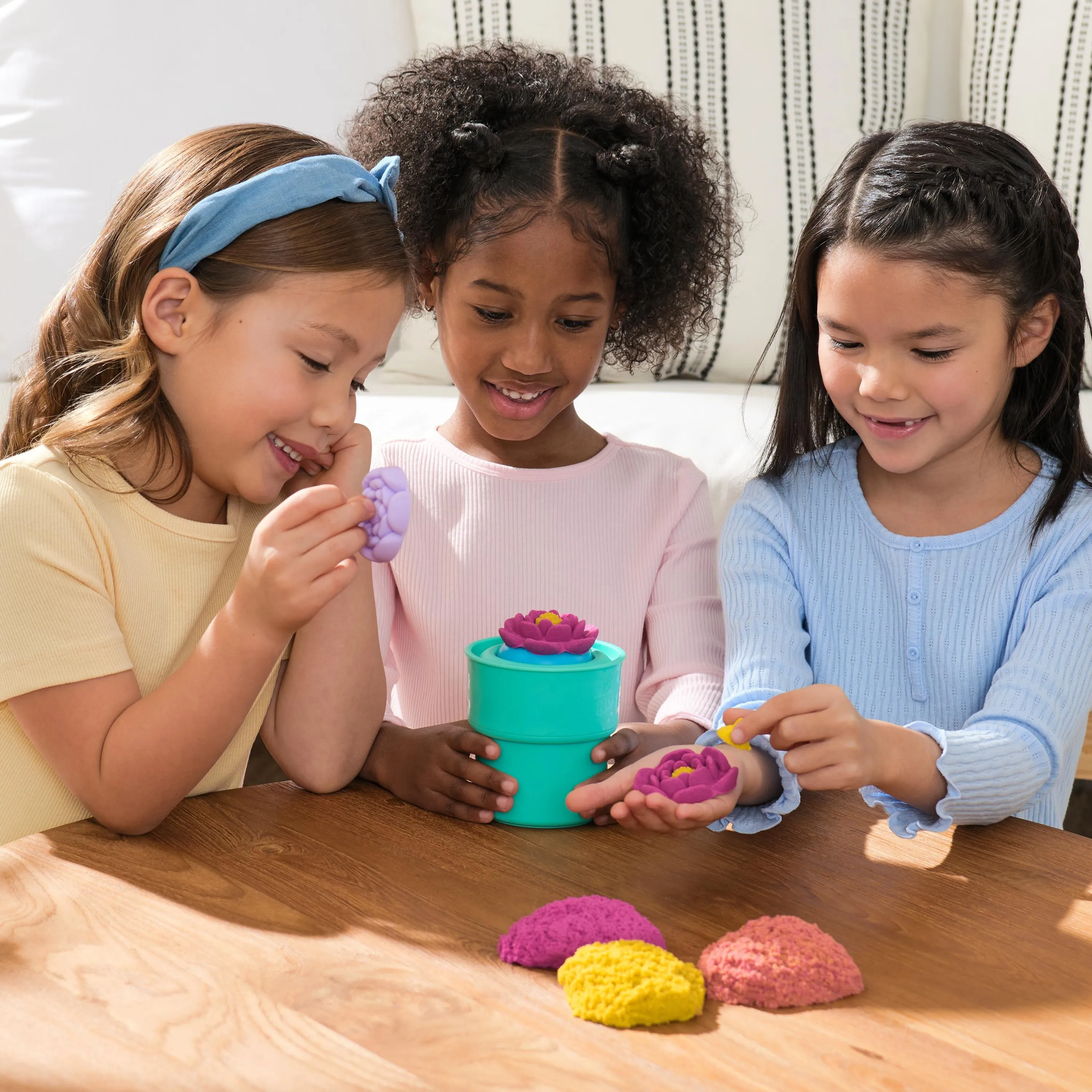 Kinetic Sand rozvíjej se poupátko omogućuje djeci da stvore procvjetali cvijet jednim pritiskom. Složi neon ružičasti i žuti pijesak, pritisni kalup i gledaj kako cvijet čarobno izranja! Uz dodatne kalupe za listove, pčelice i ruže, svaka igra je nova šarena vrtna priča.