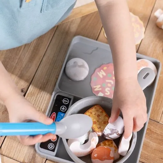 Umirite gladnu maštu uz Melissa & Doug Water WOW! – wok tavu s promjenom boje. Stavite igračke namirnice u lonac ili na roštilj, pritisnite žlicu s vodom ili kapnite iz bočice s maslinovim uljem i gledajte kako se hrana „kuva“ i mijenja boju! Mali kuhari mogu pripremati gljive, mrkvu, brokulu, piletinu, škampe i grah, te pariti obostrane krugove riže, juhe, špageta ili makarona sa sirom. Pustite dijelove da se osuše i ponovno nastavite igru!Prikazati