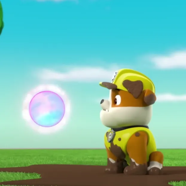 Na zelenoj livadi Adventure Baya, Rubble proučava svjetleću kuglu. „Vau, što je ovo? Izgleda kao gigantska teniska loptica!” zalaje. Ryder se smiješi: „Oprezno, Rubble! Kugla možda krije tajnu misiju.” Rubble maše repom: „Ako treba kopati, ja sam tu!” Zajedno kreću otkriti izazov kugle.