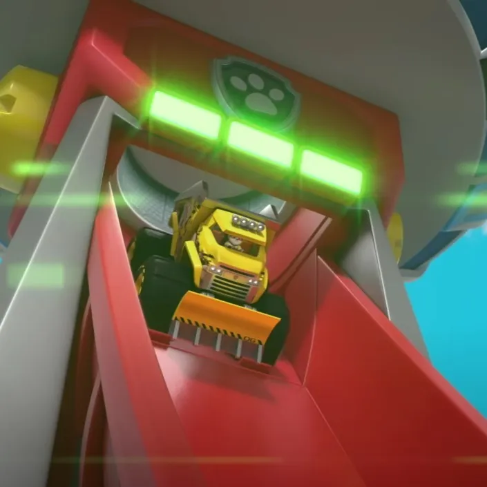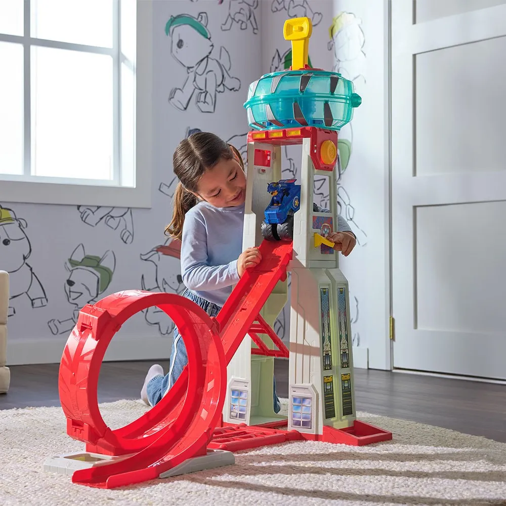 Okupljamo se oko velike kule i lansiramo Chaseov kamion kroz ogromnu petlju dok svjetla bljeskaju. Svaka vožnja donosi novu radost i smijeh.