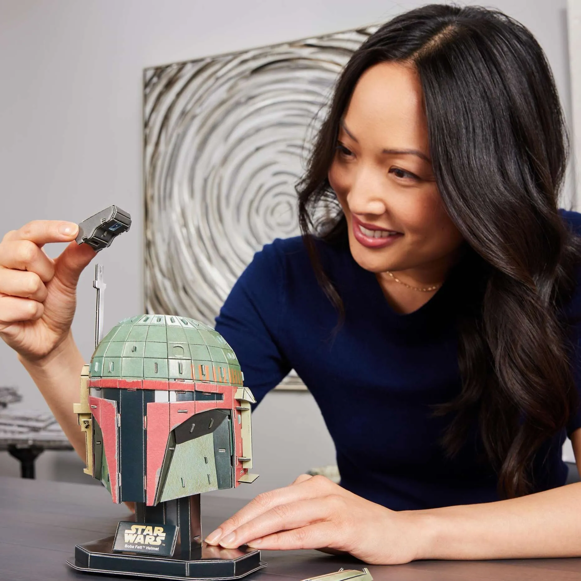 3D puzzle 4D Build Star Wars Boba Fett kaciga omogućuje fanovima da slože legendarnu kacigu lovca na ucjene do najsitnijeg detalja. Sa 93 unaprijed izrezana dijela i preciznim otiskom, svaki zavoj i udubina izgleda kao u filmu. Gotov model savršen je za izlaganje i potiče epske Star Wars avanture u svakoj sobi.