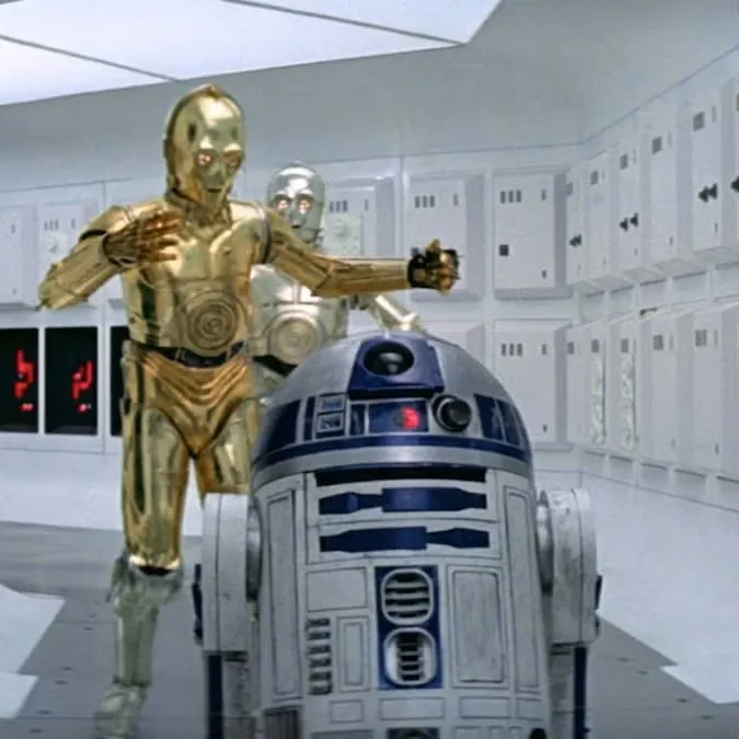 Na hodniku Tantive IV C-3PO maše rukama: „R2-D2, kamo juriš? Probušit će nas kao sir!” R2-D2 odlučno pišti i kotrlja se dalje. „Nije vrijeme za junaštvo!” prosvjeduje C-3PO. R2-D2 nestašno zacvrkuće. Zajedno jure dostaviti Leijinu poruku i nadmudriti Carstvo.
