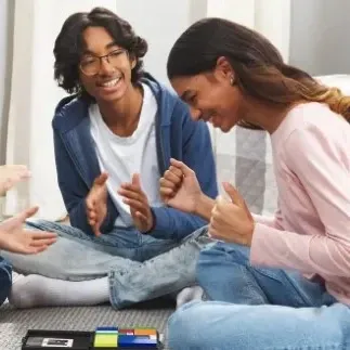 Na mekanom tepihu u dnevnoj sobi, Adam se smije Klari i okreće Rubik’s Gridlock blok. „Kladim se da me nećeš pobijediti!” Klara se smije: „Gledaj i uči, genijalče!” Treći prijatelj se bori s karticom. Adam namigne: „Gubitnik donosi grickalice!” Klara: „Spremni? Tko prvi riješi ‘Dvostruki križ’, pobjeđuje!”