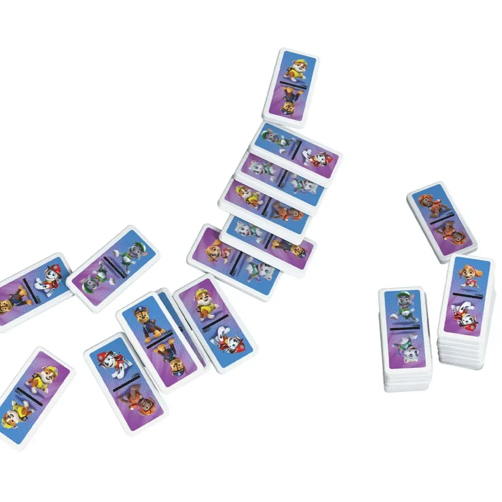 Psići u ophodnji domino pretvara klasičnu igru u šaroliku avanturu s plastičnim pločicama na kojima su omiljeni likovi poput Chasea, Skye i Marshalla. Djeca mogu spajati, graditi duge lance i uživati u satima igre osjećajući se kao dio spasilačkog tima.