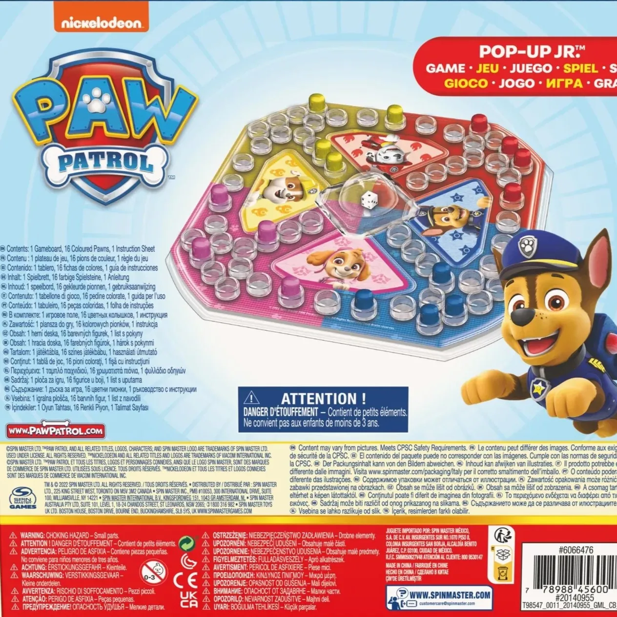Ova društvena igra donosi avanture Psića u ophodnji ravno na stol. Djeca igraju s omiljenim junacima - Chaseom, Marshallom, Skye i Everest - i natječu se šarenim figuricama po ploči. Skočna kocka donosi uzbuđenje svakom potezu, a jednostavna pravila omogućuju da i najmlađi lako zaigraju.