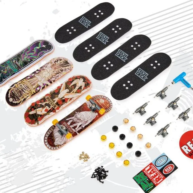 Tech Deck donosi pravu dozu zabave s autentičnim fingerboardovima od stvarnih skejterskih tvrtki! Svaki od njih ima autentičan dizajn od najvećih svjetskih skejterskih tvrtki, uključujući Skate Mental, DGK, Sk8Mafia, Real Skateboards i druge. Ovaj paket od četiri uključuje 4 daske koje možete sastaviti na bilo koji način. Isprobajte svoju omiljenu seriju trikova i povećajte težinu svojih trikova, baš kao što to rade profesionalci. Vozite se i grindajte sa svojim novim fingerboardovima za djecu iz serije X-Connect. Sastavite setove rampi Competition Wall ili Bowl Builder 2.0 (svaki se prodaje zasebno) i isprobajte ih na svojim daskama. Ima puno daski, figura i setova za igru koje možete sakupljati! Uživajte u vožnji, okretima i skokovima na prepreke s fingerboardovima Tech Deck od stvarnih skejterskih tvrtki! Tech Deck mini prstene daske za skateboard i setovi rampi idealan su poklon za djevojčice u dobi od 6 do 8 godina koje vole male i cool igračke ili kao alternativa automobilima za dječake u dobi od 6 do 8 godina. Pokrenite svoju kolekciju i usavršite svoje trikove na fingerboardovima s Tech Deck!Prikazati